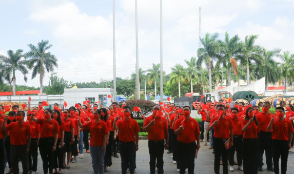 In midsummer, July, enthusiasm is like fire! The Minxing Cable Company is already flying the party flag, and is permeated with a festive and peaceful atmosphere. In the morning of the same day, party members wearing "Chinese Red" T-shirts and other participants entered the venue in an orderly manner, lined up with a number "100" celebration pattern, expressing their infinite love for the Communist Party of China. Following the host’s order, accompanied by the vigorous and majestic national anthem, the flag bearer struggled to throw the bright five-star red flag into the sky. The national flag rose up against the first ray of sunshine in the morning. All the staff solemnly stared at the national flag and sang the national anthem. The face is full of pride and pride.