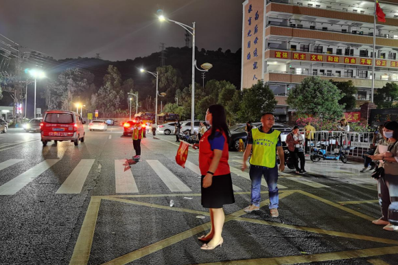 Volunteer team members guide the vehicles to pass in an orderly manner on the spot